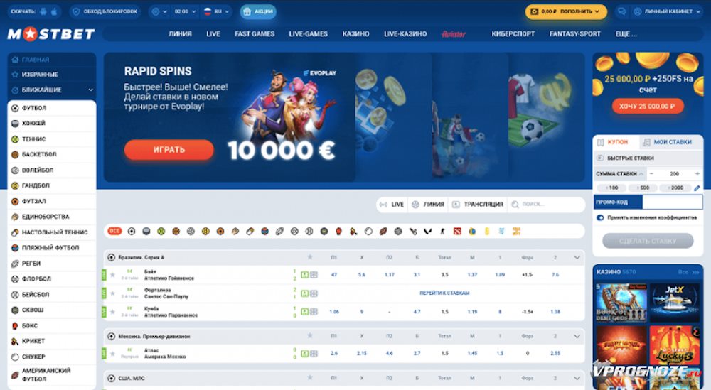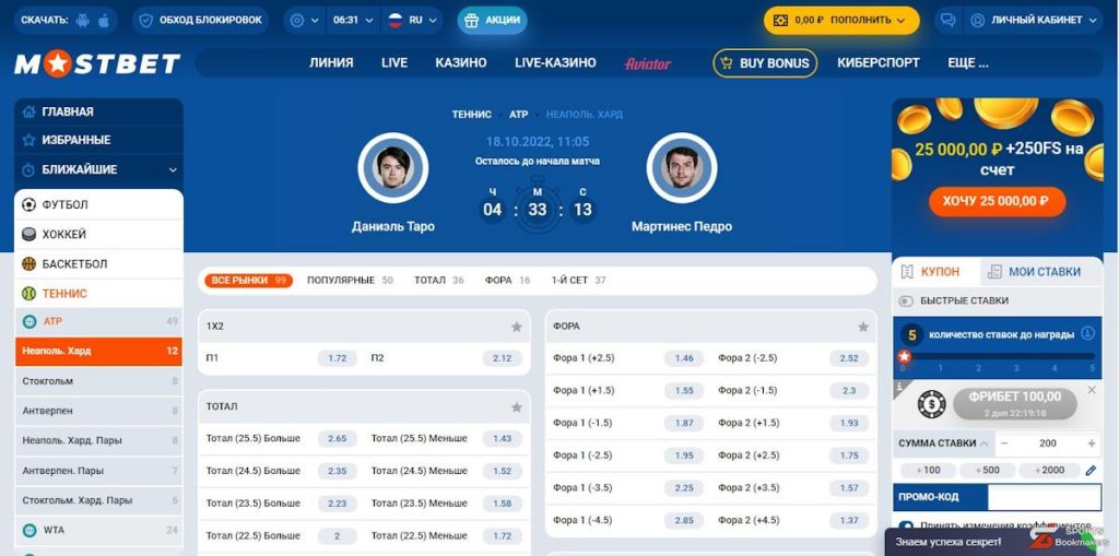 На официальном сайте Mostbet пользователи находят широкую линию спортивных событий с подробной росписью. Делать ставки можно не только на футбол, теннис или хоккей, но и на менее популярные дисциплины: водное поло, флорбол, бадминтон, единоборства, крикет. Особое место занимает раздел «Киберспорт», где ежедневно доступны турниры по Dota 2, CS:GO , League of Legends и д